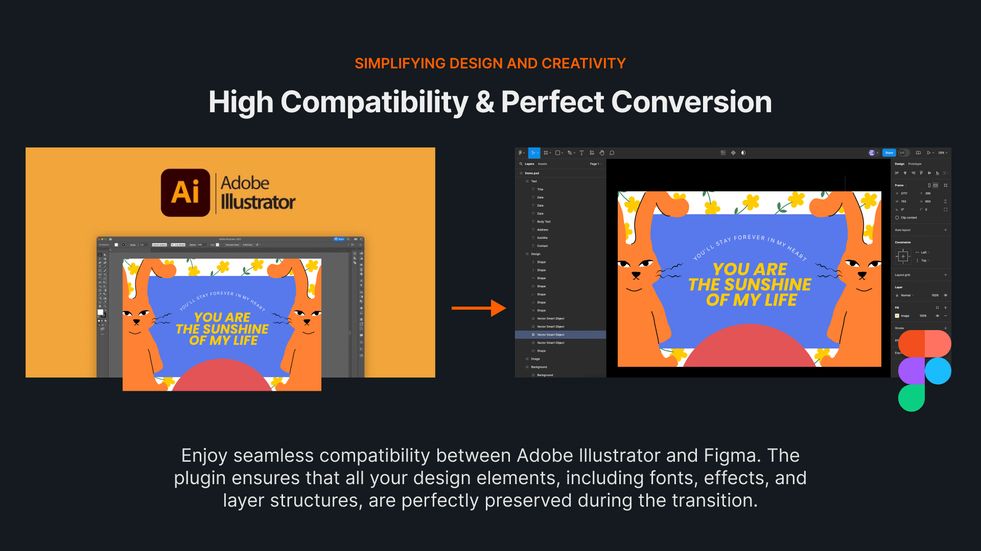 High Compatibility & Perfect ConversionEnjoy seamless compatibility between Adobe Illustrator and Figma. The plugin ensures that all your design elements, including fonts, effects, and layer structures, are perfectly preserved during the transition.